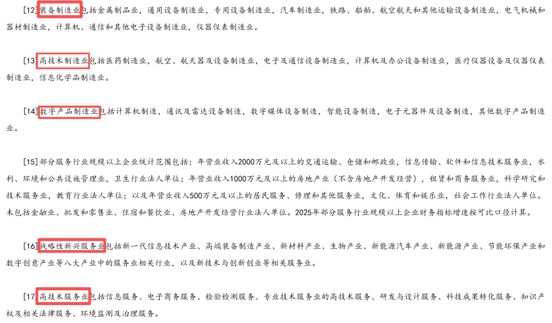 装备制造业、高技艺制造业、数字家具制造业、劳动机器东谈主、出动通讯基站教悔、劳动器、政策新兴办业绩、高技艺办业绩。