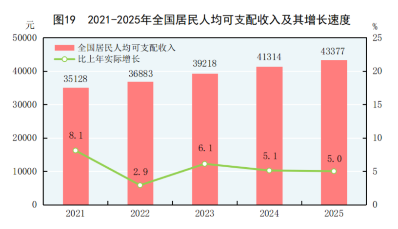 旧年,寰宇住户东谈主均可欺诈收入达到了4.34万,增幅5%,和GDP增速保握一致!