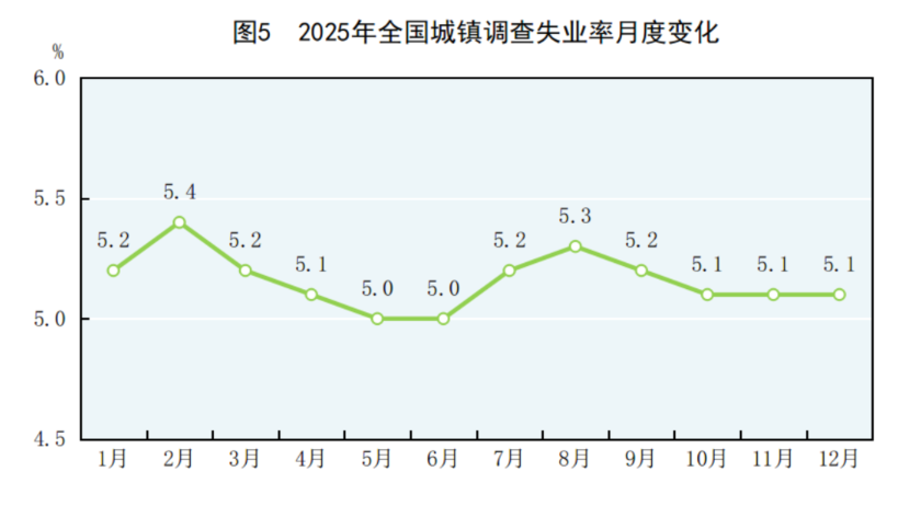 全年寰宇城镇拜访幽闲率平均值为5.2%;年末寰宇城镇拜访幽闲率为5.1%。