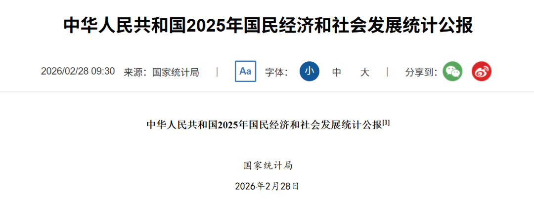 没错,即是这份2025年国民经济和社会发展统计公报。